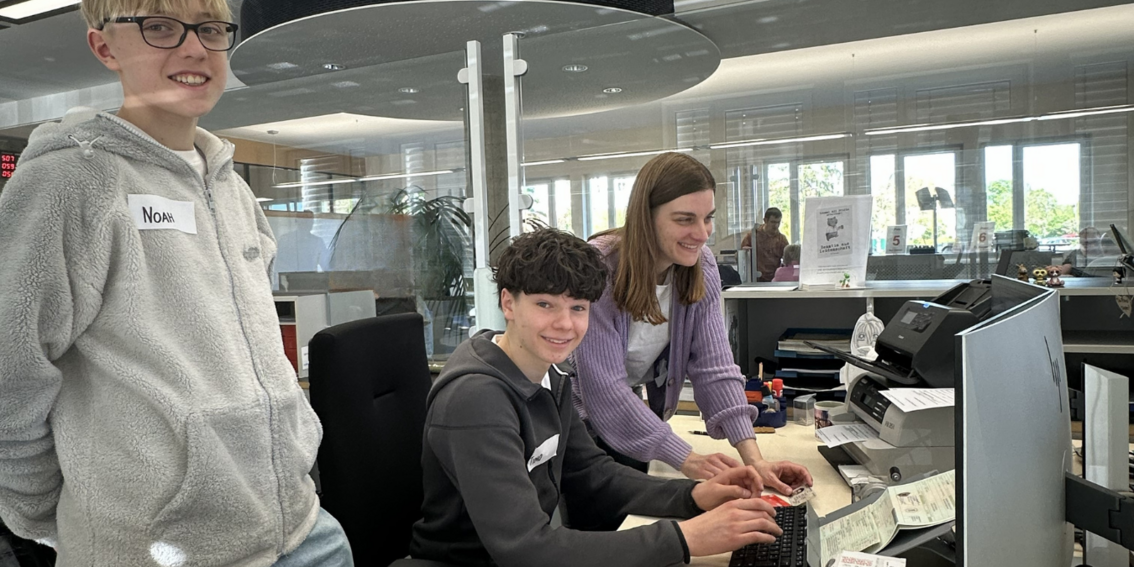 Nach der Begrüßung durch Landrat Thomas Eberth und Ausbildungsleiterin Anna-Lena Rushiti startete das Programm mit einem Rundgang durch das Amtsgebäude in der Würzburger Zeppelinstraße. Dabei wurde schnell deutlich: Hinter den Bürotüren verbergen sich ganz unterschiedliche Aufgaben. „Der Aktionstag ist eine wichtige Chance, junge Menschen einmal über den Tellerrand schauen zu lassen. Gleichzeitig wollen wir frühzeitig für die Aufgaben und Perspektiven im öffentlichen Dienst begeistern“, betonte Landrat Eberth.
