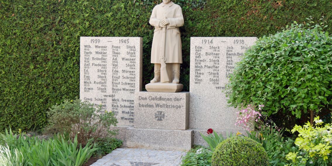 Bei der Gründungsfeier des Vereins am 5. August 1923 im sogenannten Krisenjahr der Weimarer Republik wurden eine Fahne und das Kriegerdenkmal gesegnet. Die Fahne hat damals sechs Millionen Mark gekostet. Und das Kriegerdenkmal aus Sandstein zwei Millionen. Ludwig Hauck aus Estenfeld hatte einen Landwehrmann in Kriegsausrüstung dargestellt.