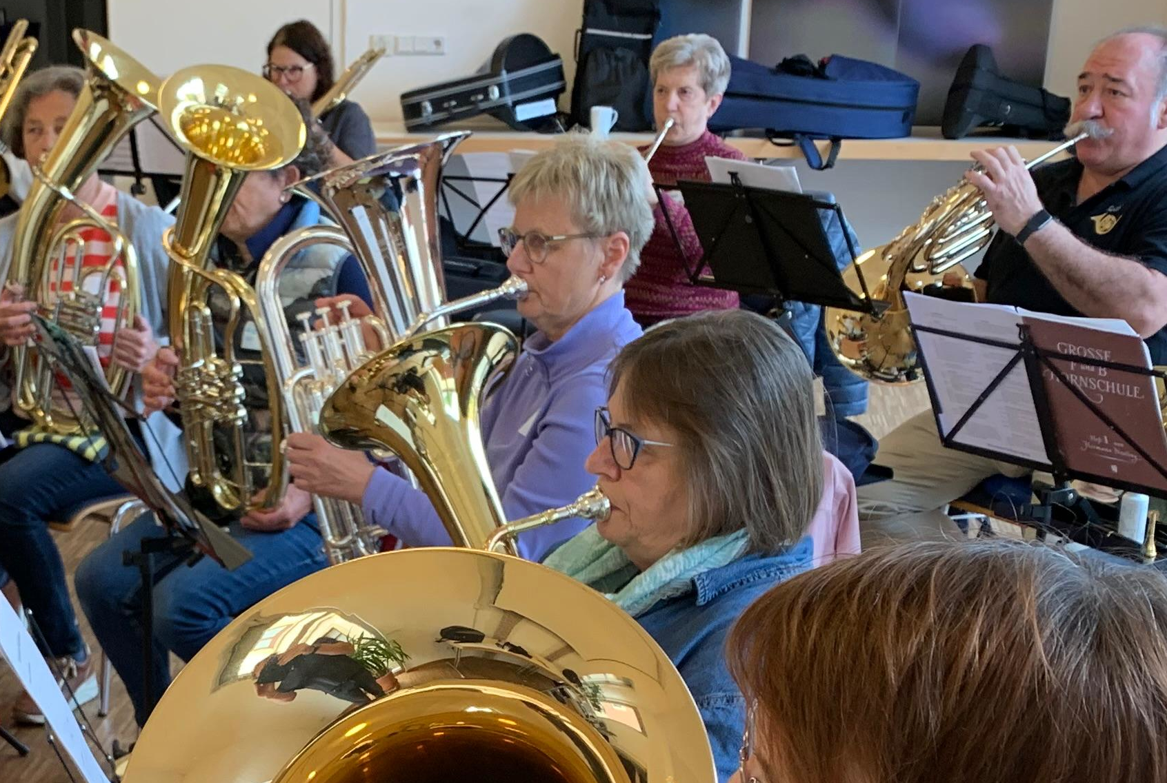 Der Schnuppertag zeigt außerdem Wege auf, wie es danach weitergehen kann – etwa mit Unterricht oder dem Einstieg in Erwachsenenbläserklassen in Musikvereinen in der Region. Denn Musik ist keine Frage des Alters und der Funke der Begeisterung springt schnell über!